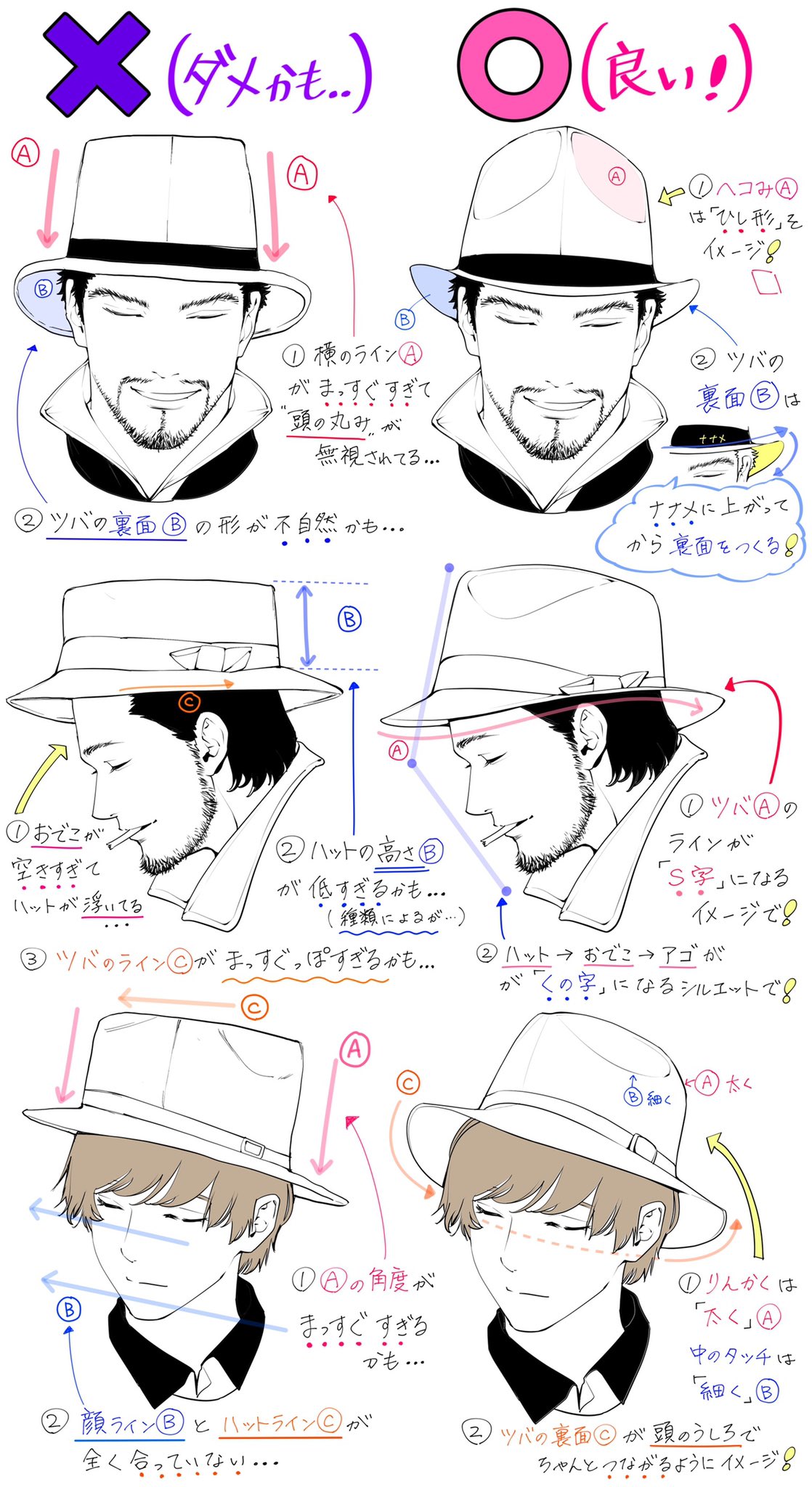 吉村拓也 イラスト講座 A Twitter ハット帽子の描き方 不自然な形の帽子 にならない ダメかも と 良いかも